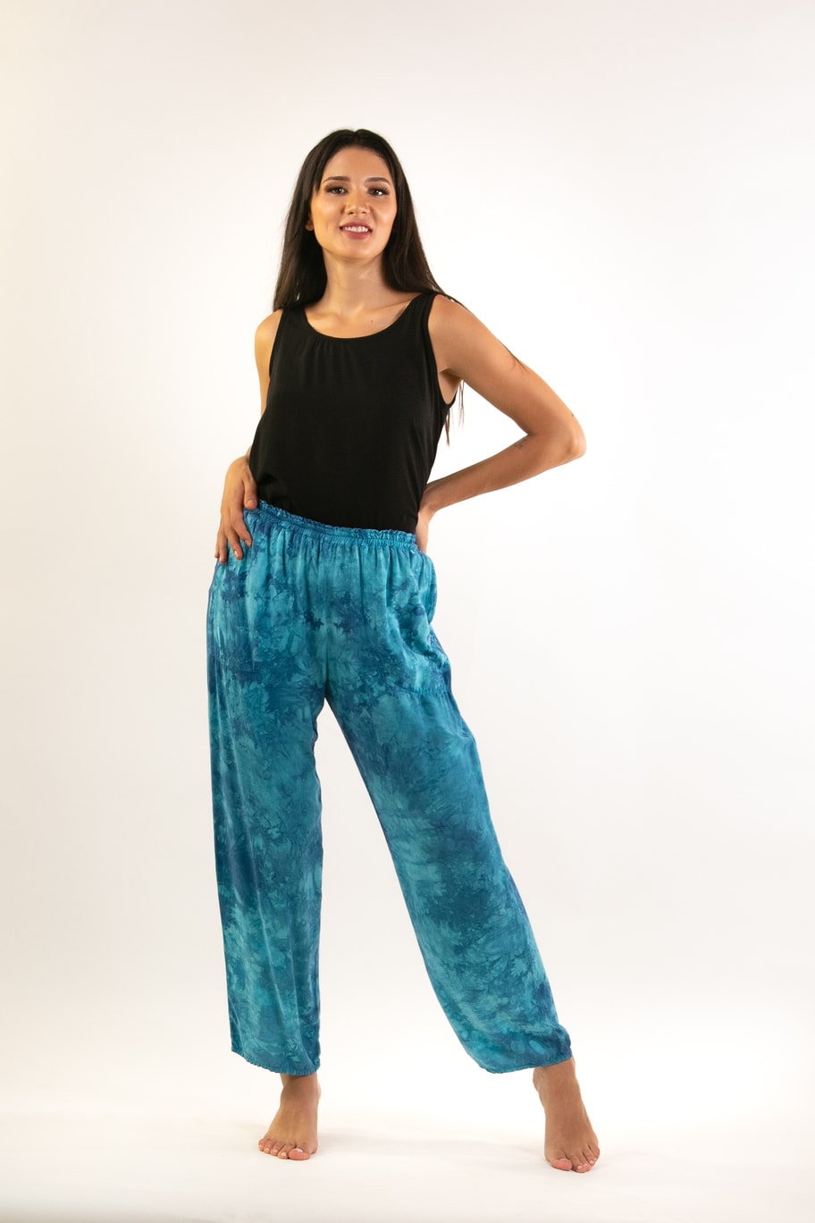 100% rayon pants for women - All these clothing are woven of spindle. Long pants, straight legs, hidden pockets and elastic waist.